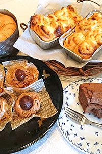 レッスンでは三種類のお菓子・パンを全て自分で製作していただき、 出来たお菓子・パンは全てお持ち帰りできます。